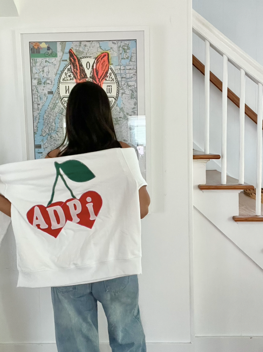 White Alpha Delta Pi Cherries Crewneck